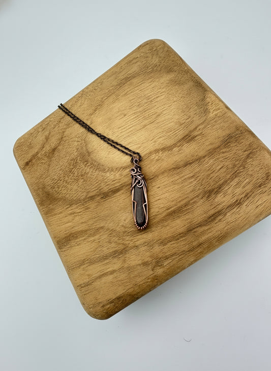 Hand-Wrapped Red Dinosaur Bone Pendant — Copper & Brass | 22" Chain