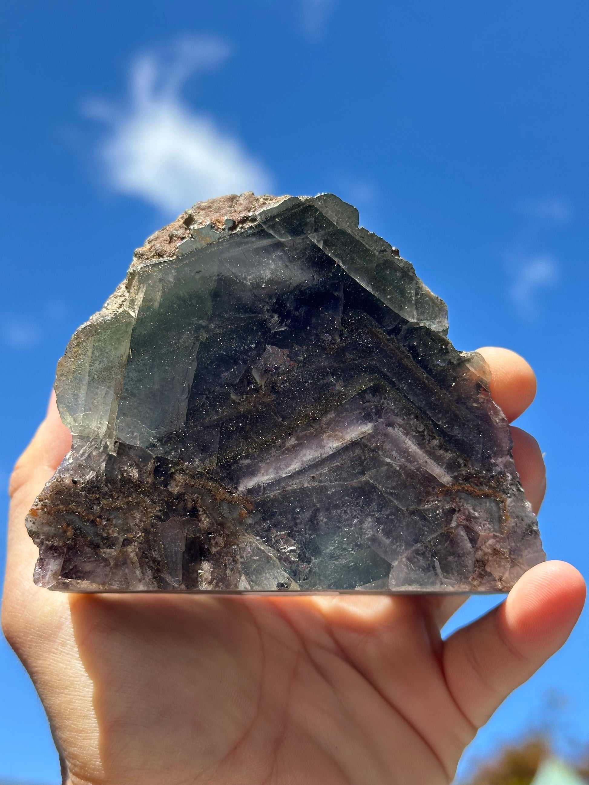 - Vibrant Color Bands: Rainbow Fluorite is celebrated for its unique and vivid layers of color, ranging from deep purples and blues to calming greens and yellows. Each piece is a natural work of art, reflecting the harmony and balance it brings to your life. This particular piece even has flakes of gold layered within its banding.