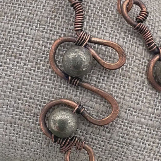 Hammered Copper & Pyrite Earrings